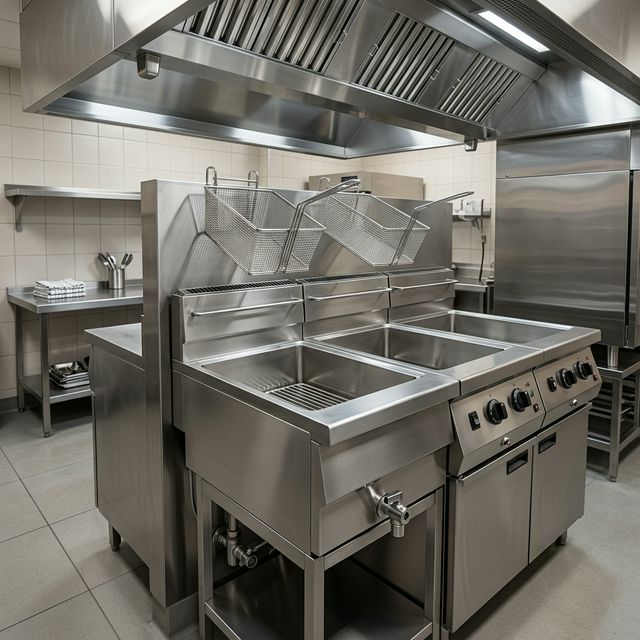 튀김기, 후드, 닥트, 바닥, 매장 홀
